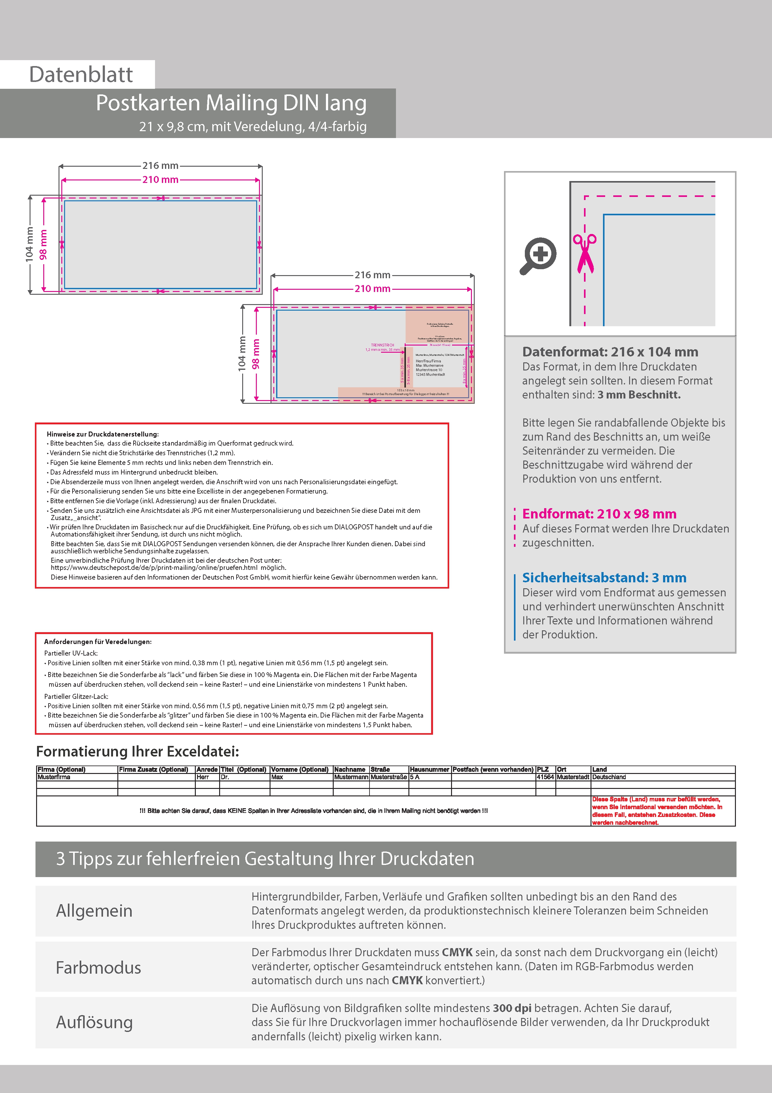 Postkarten-Mailing DIN lang Quer (21,0 cm x 9,8 cm) mit partieller Glitzer-Lack-Veredelung