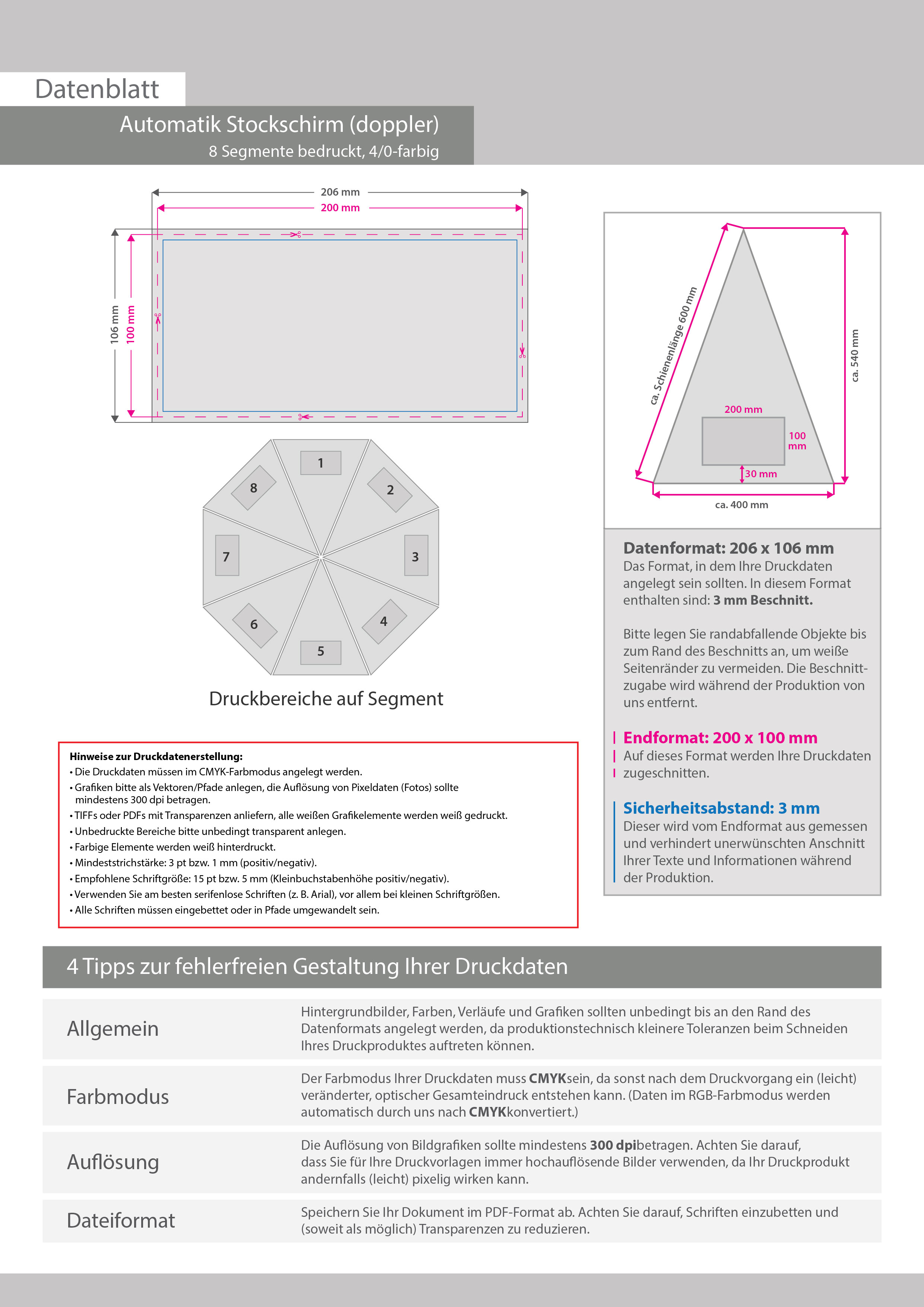 Automatik Stockschirm (doppler), 4/0-farbig, 8 Segmente bedruckt
