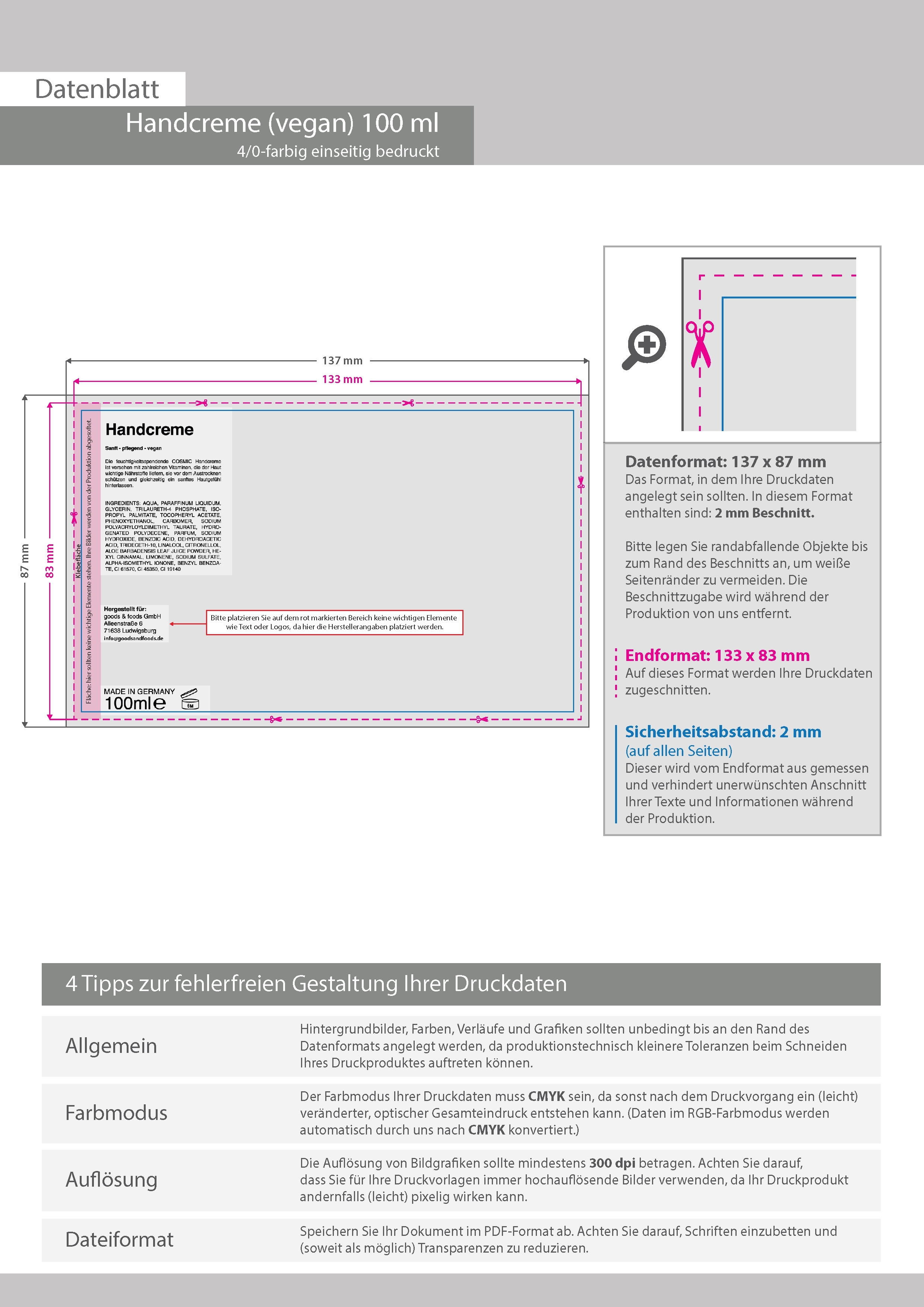 Handcreme (vegan) 100ml, 4/0-farbig einseitig bedruckt