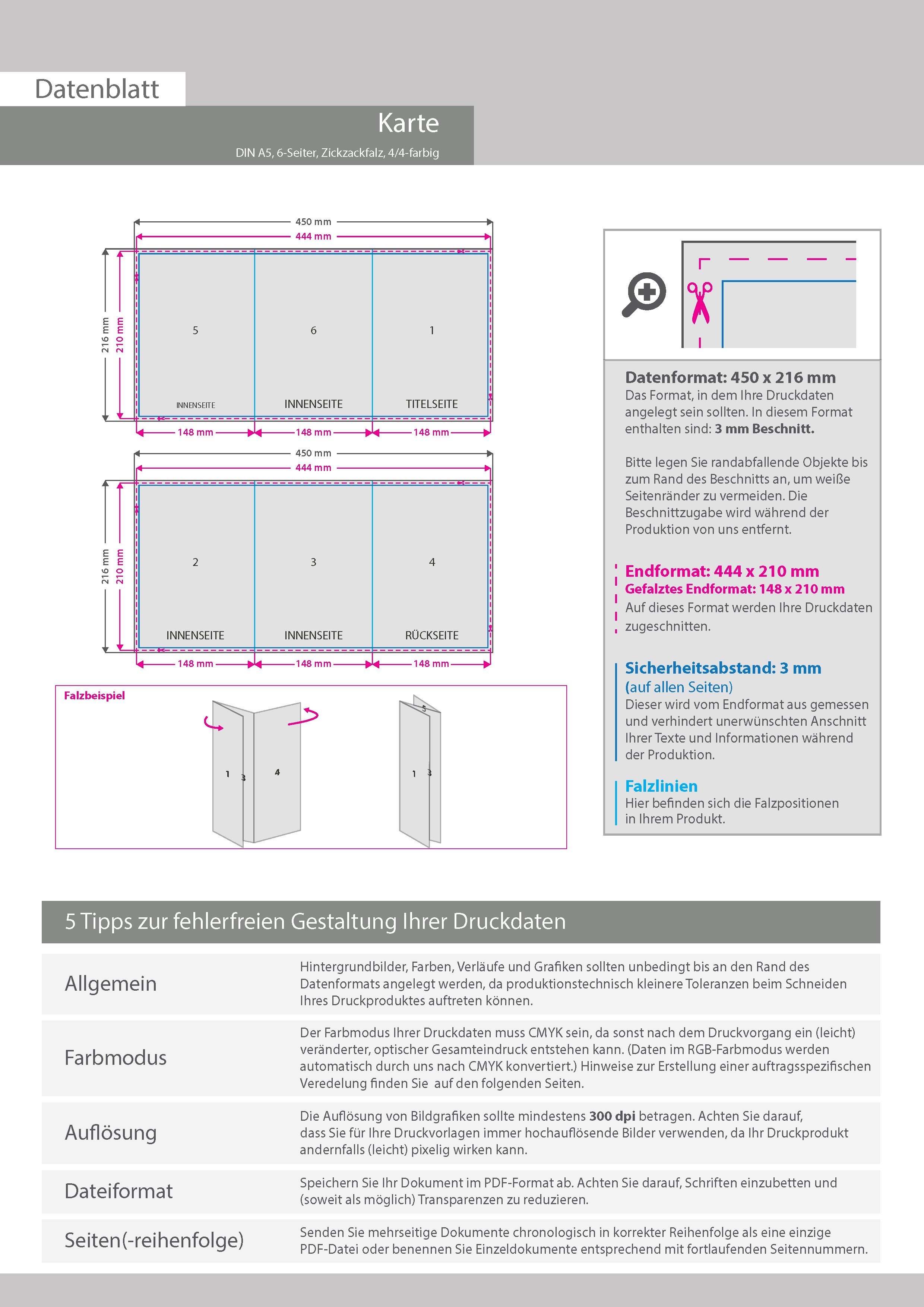 Einladungskarte, gefalzt auf DIN A5, vertikaler Zickzackfalz, 6-seitig