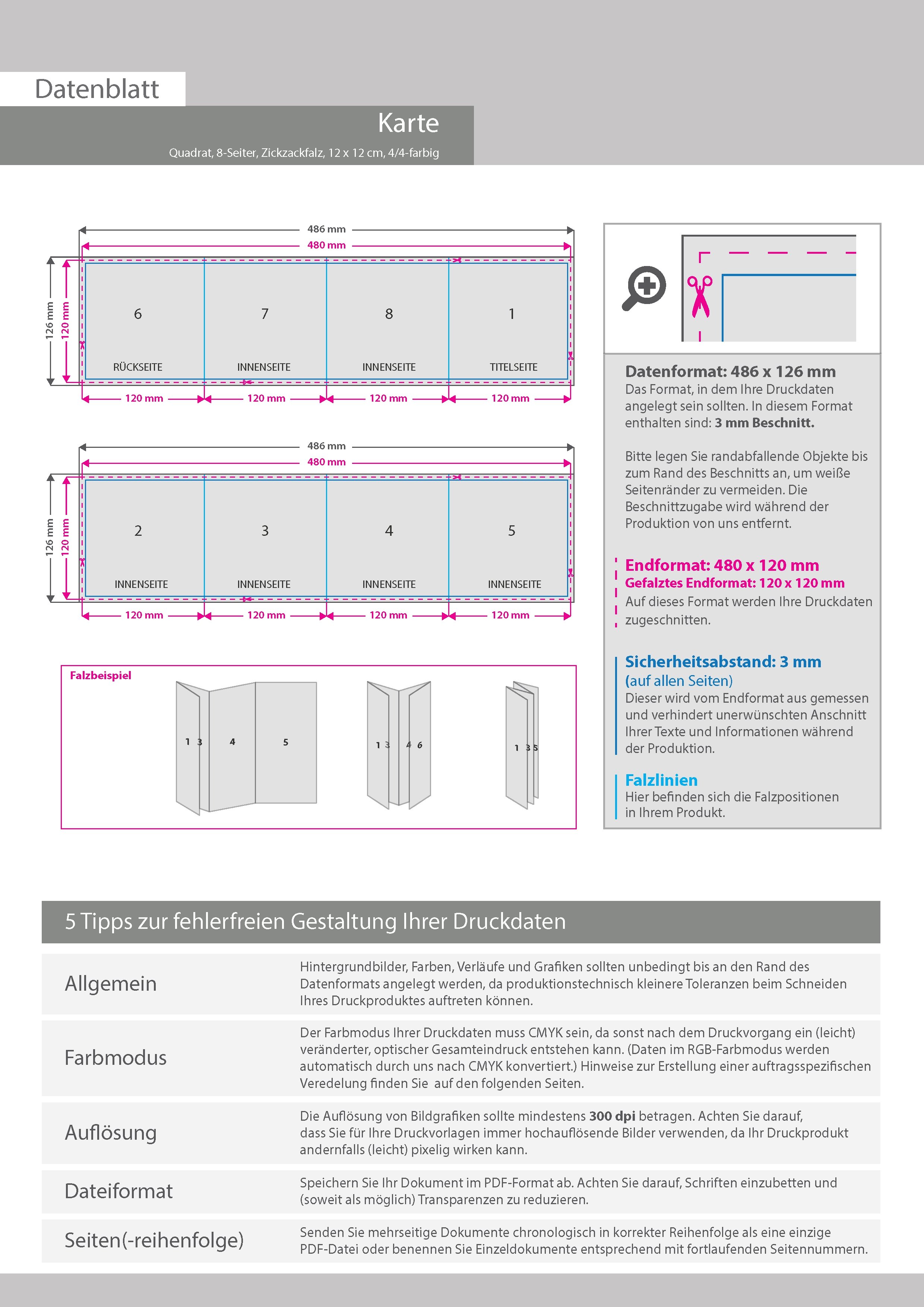 Hochzeitskarte, gefalzt auf Quadrat 12,0 cm x 12,0 cm, vertikaler Zickzackfalz, 8-seitig