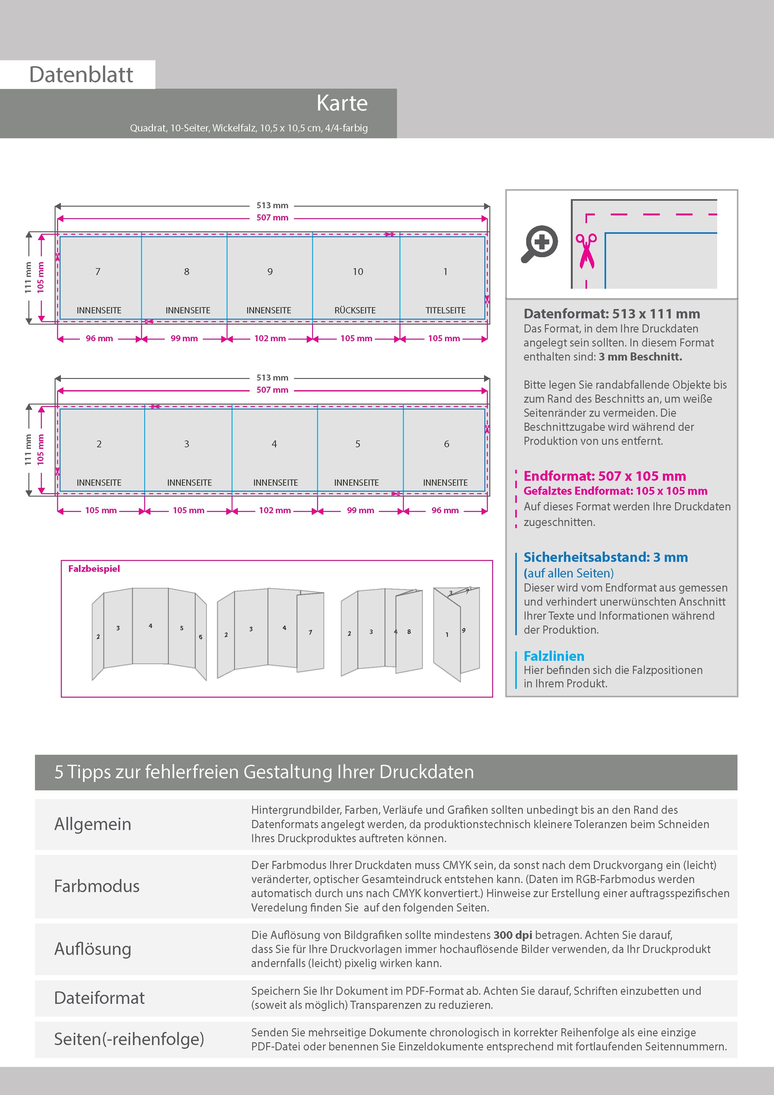 Taufkarte, gefalzt auf Quadrat 10,5 cm x 10,5 cm, vertikaler Wickelfalz, 10-seitig