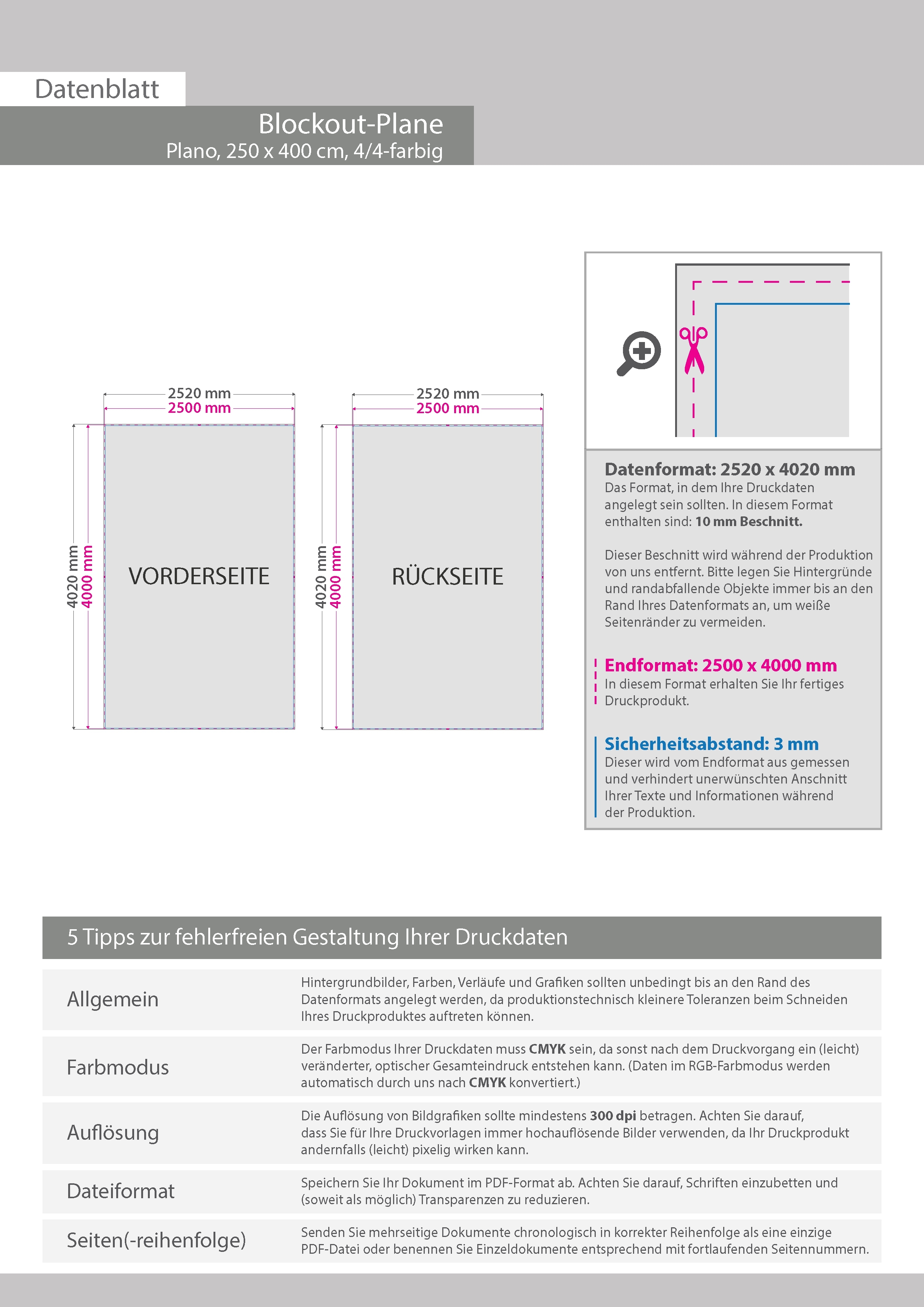 Hochwertige Blockout-Plane 250 x 400 cm, 4/4-farbig bedruckt, plano