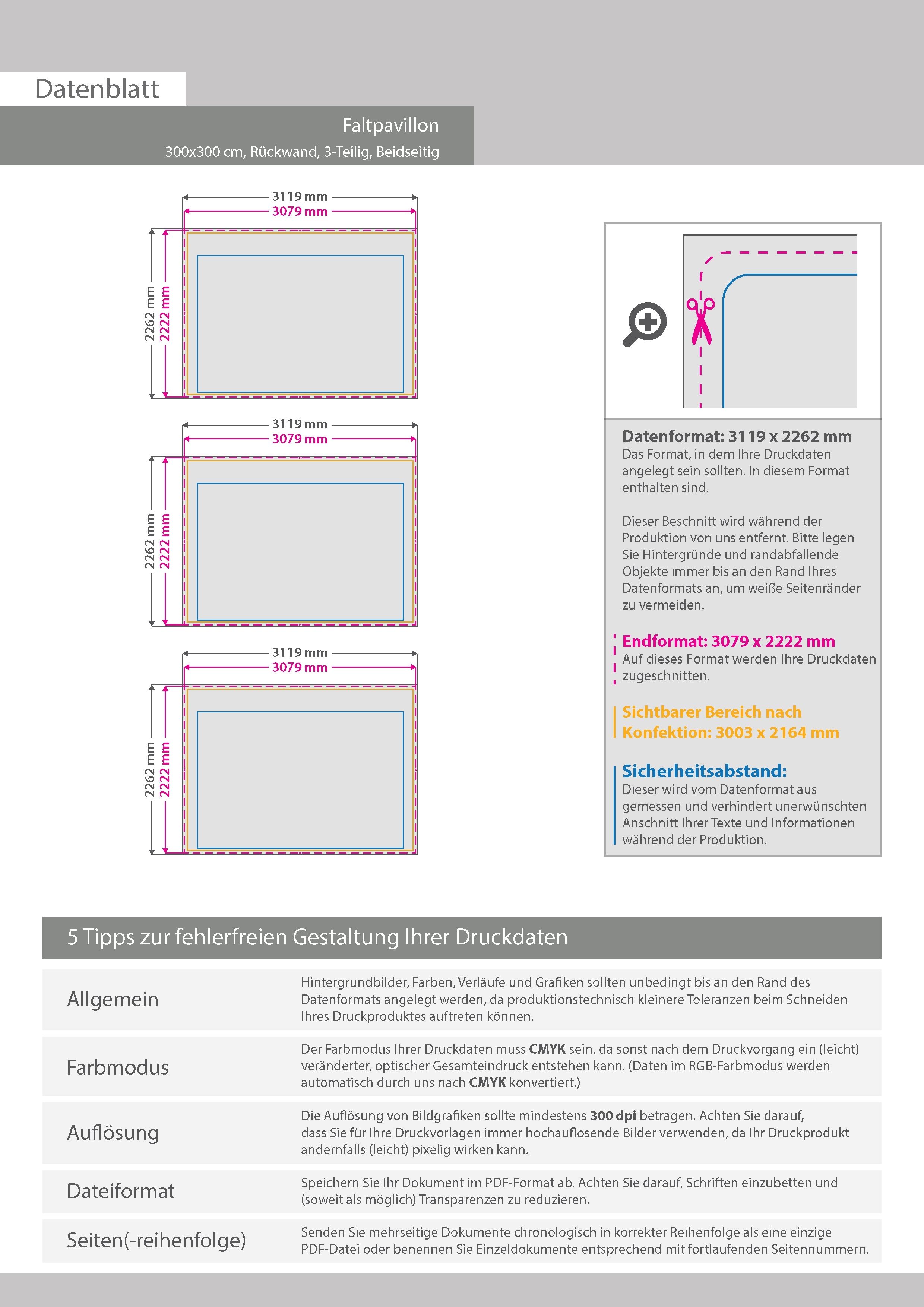 Komplettset (3 Wände) für Faltzelt/Faltpavillon 300 x 300 cm, beidseitig bedruckt